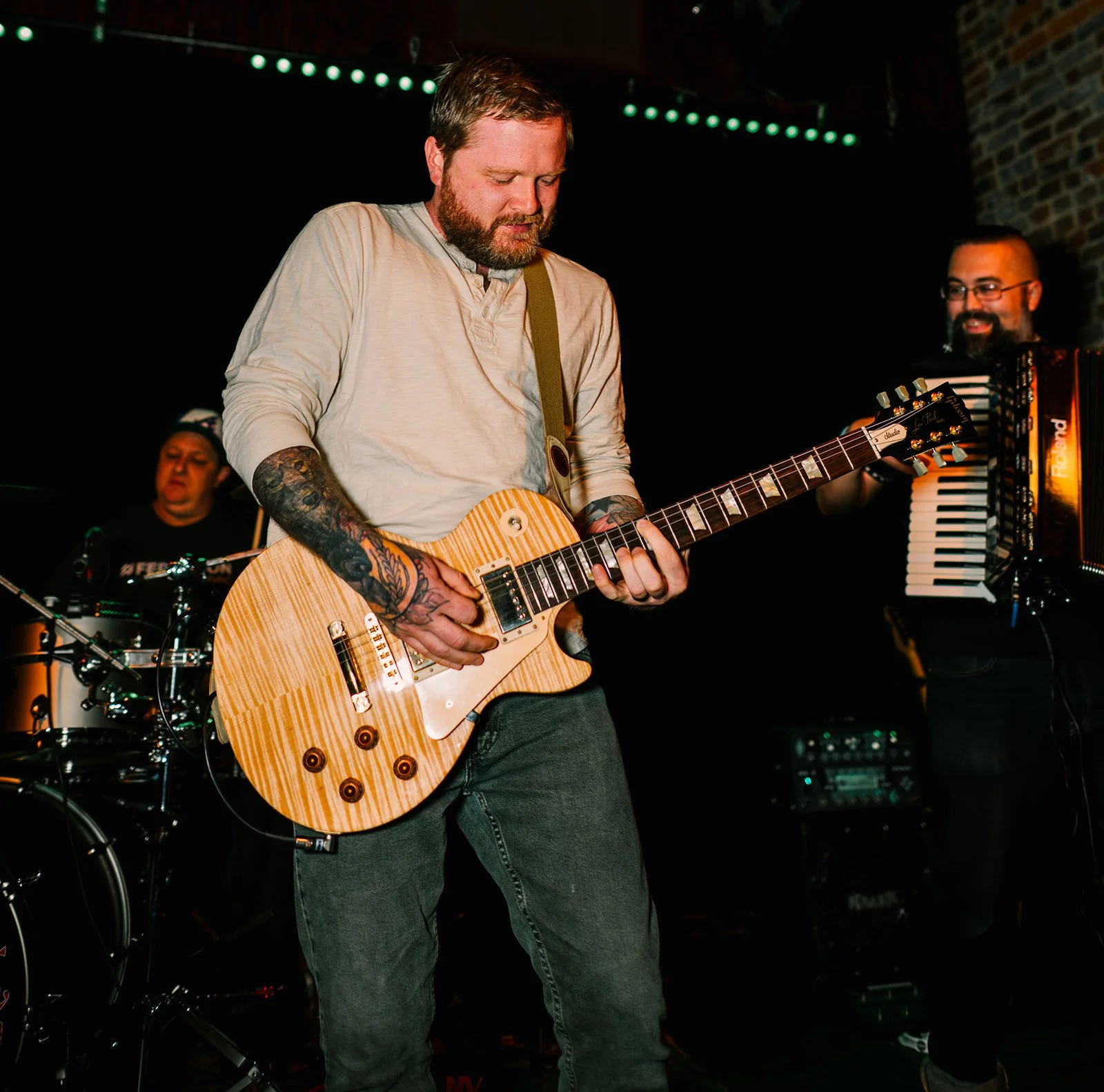 Geo: Nothing crazy but nothing I would even attempt now. We were a bit more brave 16 years ago when we were in our early to mid 20’s thinking we were invincible. But our Violin player and I use to enjoy what we would call “Light Trespassing” whenever we had one too many drinks and I dunno…maybe we found a ladder to a rooftop of an abandoned building and went exploring or maybe we found an entrance to a brand new construction high rise that was easily accessible and maybe we spent a few hours on that site. Hypothetically speaking of course. One time our Accordion player flooded an entire hotel room (by accident) in an unnamed state and by pure chance that hotel was demolished a year later.