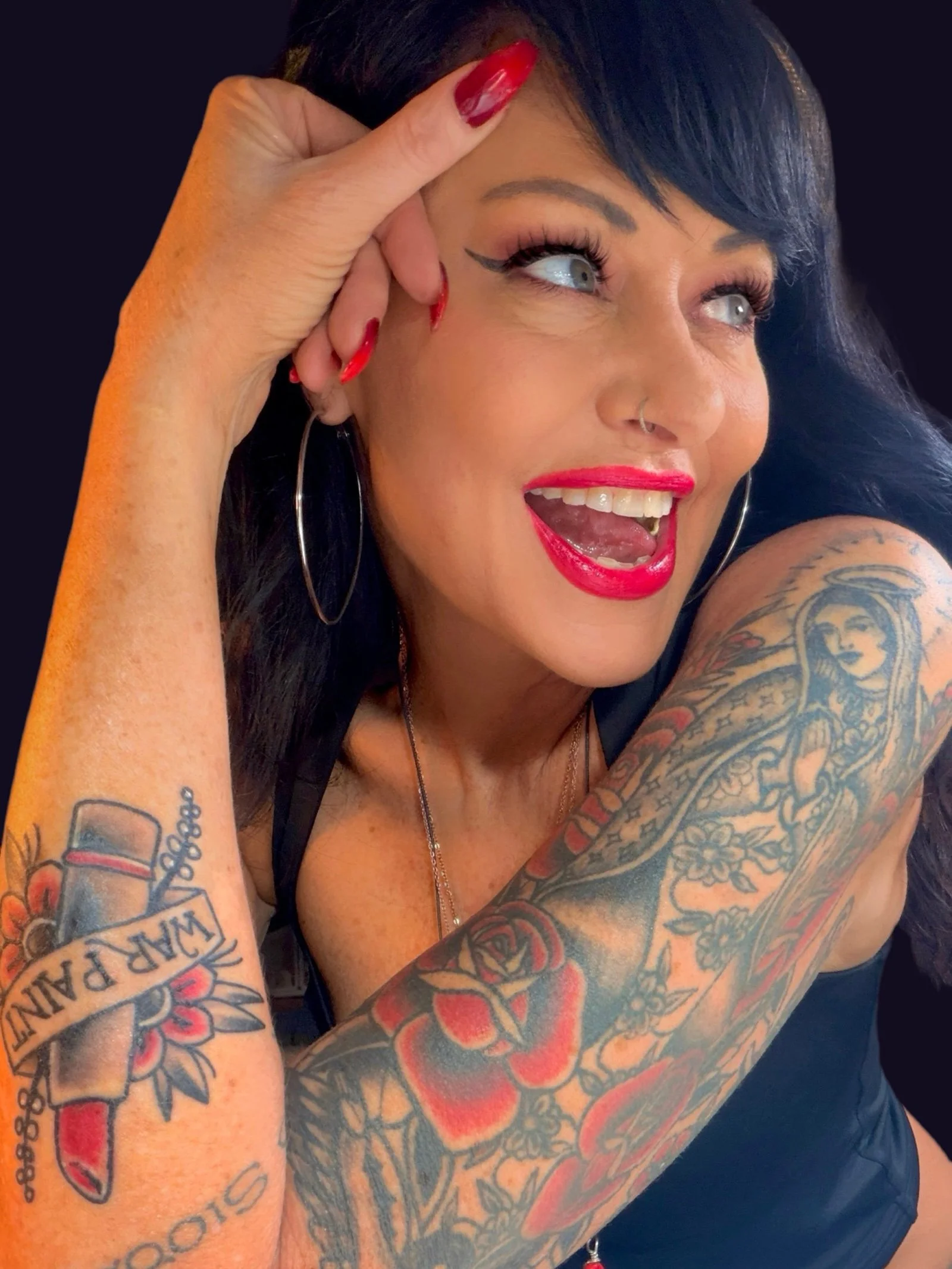 Carrie Riot is one of those quintessential rebels - forging her own path, on her own terms. Navigating a turbulent youth in the Seattle grunge era left her with a strong sense of badass independence. Her creative expression—spanning photography, art, and pinup—functions as a vital form of emotional expression. While she presents a bold, punk persona that challenges traditional beauty standards and embraces the divine feminine, in this interview she candidly discusses the vulnerability of being judged and her ongoing journey to replace a sometimes harsh internal dialogue with self-confidence. Now in her 50s, she balances this fierce outspokenness with a goofy sense of humor (on display below) and a deep commitment to sisterhood, advocating for women to abandon competition with each other in favor of collective power. Supported by her long-term partner who embraces her wild spirit, she continues to critique societal complacency and the modern rat race, drawing inspiration from the vibrancy she finds in cultures abroad to fuel her unapologetic authenticity.